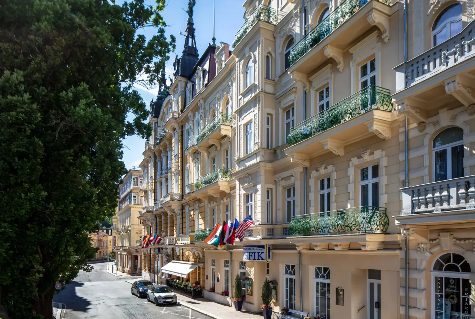 Das historische Gebäude des Grandhotel Pacifik ist eine dominierende Erscheinung der Hauptstraße von Mariánské Lázně in der Nähe der Kurkolonnade mit der singenden Fontäne. Das Hotel bietet Unterkünfte und gastronomische Leistungen auf hohem Niveau. Umfassende Kurbehandlungen, therapeutische Programme, Anwendungen aus natürlichen Heilquellen, die Lesní‑Quelle für Trinkkuren und Mineralbäder, Hydrotherapie und ein breites Spektrum weiterer therapeutischer Verfahren. Arztpraxen und Behandlungsabteilungen befinden sich direkt im Hotel.