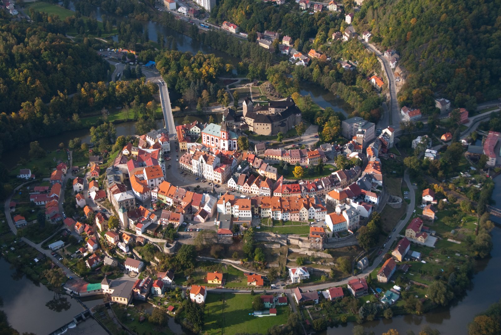 Die mittelalterliche BurgElbogen auf einem markanten Felsen, an drei Seiten vom Fluss Ohře umgeben, liegt im Herzen der malerischen Stadt Loket nahe Karlsbad. Viele nannten die befestigte Stadt Elbogen mit ihrer Burg den „Schlüssel zum Königreich Böhmen“. Die Burg Elbogen ist von Geschichte durchdrungen, und Liebhaber geheimnisvoller Geschichten und Legenden kommen hier voll auf ihre Kosten.