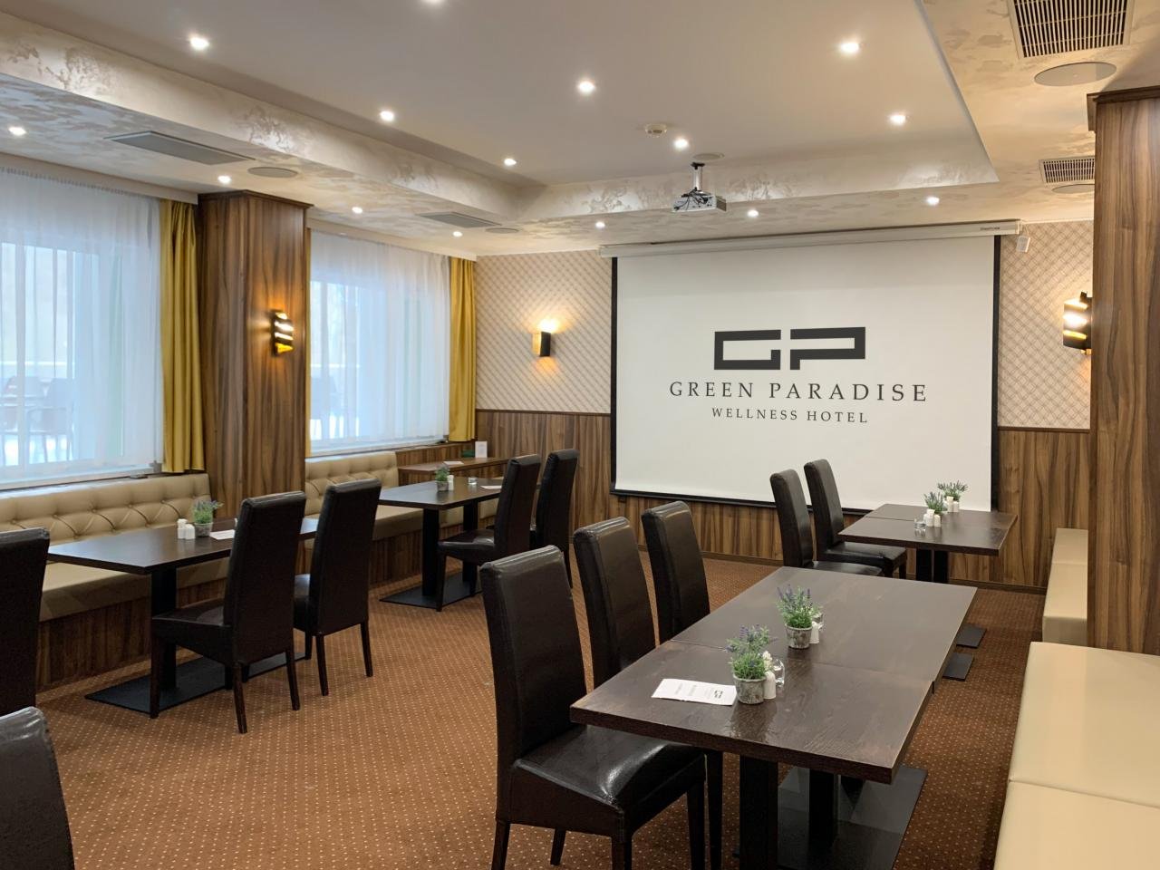 Das Hotel Green Paradise organisiert Firmenveranstaltungen, Schulungen, Klausuren, Seminare und Treffen und bietet gleichzeitig Möglichkeiten zur Entspannung und für Teamaktivitäten. Am Abend können die Gäste das hoteleigene Unterhaltungszentrum mit Bowling, Darts und Tischfußball nutzen – ideal zur Teambildung und zum Abschalten. Das Wellnesszentrum Green Paradise ist neu und modern ausgestattet und bietet eine Vielzahl von Entspannungsanwendungen, darunter eine Salzgrotte und eine Sauna. Seit 2021 verfügt das Hotel außerdem über ein brandneues Schwimmbad mit einer Bar, die Erfrischungen für die Gäste anbietet.