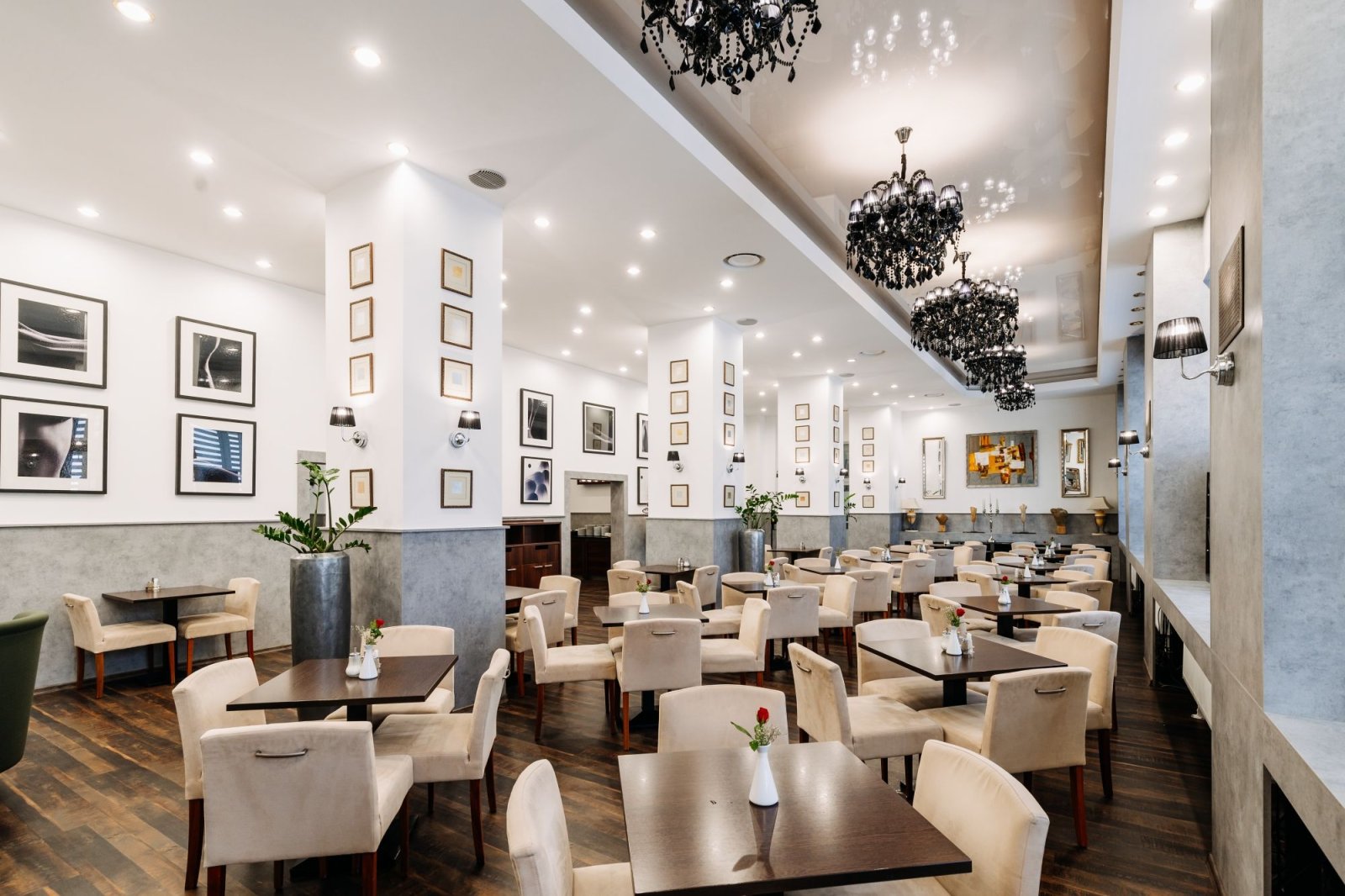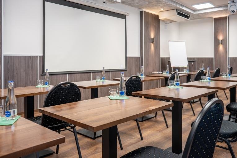 Cinema Lounge – a spacious lounge with natural daylight and full technical equipment, suitable for corporate events, training sessions, seminars, team-building, wedding receptions, celebrations, buffets, banquets, exhibitions, auctions, and other cultural and social events. The lounge has its own bar, restrooms, and a separate entrance.